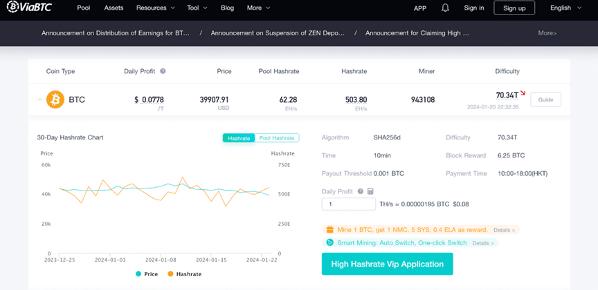 เครือข่าย Bitcoin ปรับความยากในการขุดตามการเปลี่ยนแปลงของจำนวนนักขุดทั่วโลกและพลังการประมวลผล เพื่อให้แน่ใจว่าเวลาในการผลิตบล็อกโดยเฉลี่ยจะอยู่ที่ประมาณ 10 นาที ตามสถิติจาก ViaBTC ณ วันที่ 30 มกราคม ความยากในการขุด Bitcoin อยู่ที่ 70.34T หลังจากการ Halving ในปีนี้ เนื่องจากความสามารถในการทำกำไรจากการขุดลดลง นักขุดบางรายอาจละทิ้งการขุดจะส่งผลให้ความยากในการขุดลดลง อย่างไรก็ตามการขุดเป็นกระบวนการสมดุลแบบไดนามิก และหากความยากในการขุดลดลง รายได้ก็จะเพิ่มขึ้นตามธรรมชาติ ซึ่งนำไปสู่การเข้ามาของนักขุดรายใหม่และความยากเพิ่มขึ้น จึงไปถึงจุดสมดุลใหม่