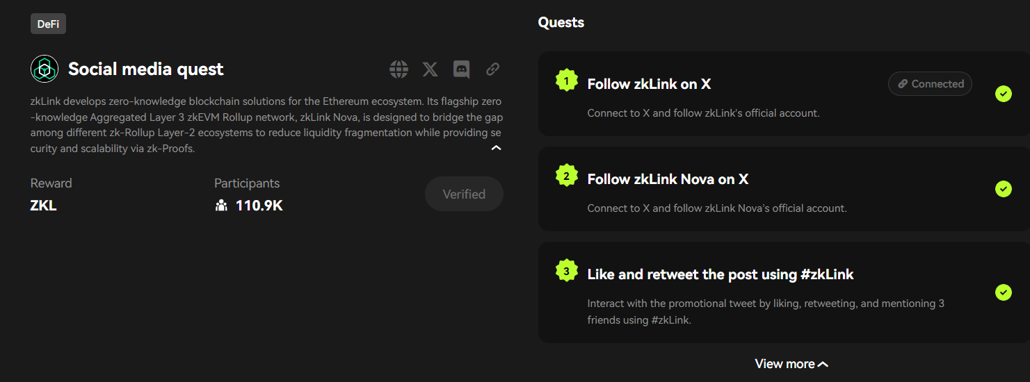 แต่ละ task ทำไม่ยากเลย เมื่อทำเสร็จแต่ละ task อย่าลืมกด Verify เพื่อยืนยันรับสิทธิ์ Airdrop zkLink