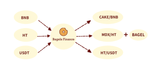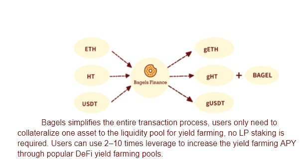 1.Bagels Finance เป็นแพลตฟอร์ม Leveraged Yield Farming แบบ Cross Chain รายแรกบนโลก Defi ที่สร้างขึ้นมาเพื่อแก้ปัญหาคอขวดและอนุญาตให้มีการเชื่อมต่อร่วมกันกันระหว่าง โปรโตคอล/DApps บนบล็อคเชนที่แตกต่างกันอย่าง HECO/BSC/ETH เป็นต้น