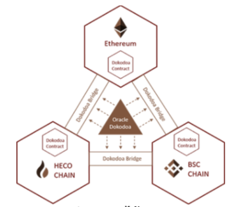 Dokodoa เป็นโซลูชันข้ามเครือข่ายแบบ decentralized ที่มีความปลอดภัยโดยใช้เทคโนโลยีของ State oracle และสัญญาอัจฉริยะ cross-chain bridge สามารถรองรับเครือข่ายที่มี Signature algorithms โดยใช้ ECDSA และ EDDSA เช่น Ethereum, HECO, BSC, Okex Chain เป็นต้น ผู้ใช้สามารถทำธุรกรรมการฝากเงินและข้ามเชนได้ในคลิกเดียว ทำให้ไม่จำเป็นต้องสลับโดยการตั้งค่าเครือข่ายเชนต่างๆไปมา โดยที่ cross-chain bridge จะตรวจจับธุรกรรมของผู้ใช้และเริ่มกระบวนการข้ามเชนโดยอัตโนมั