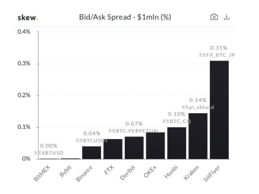 สภาพคล่อง หรือ Liquidity ถือเป็นเรื่องที่สำคัญมากสำหรับแพลตฟอร์มในการซื้อขายต่างๆ ยิ่งสภาพคล่องมากๆ ก็จะทำการซื้อขายได้อย่างรวดเร็ว และมีช่องว่างระหว่างราคาซื้อขาย (Bid/Ask spread) ที่ต่ำโดย Bybit นั้นมีช่องว่างระหว่างการซื้อและขายน้อยที่สุดเป็นอันดับสอง รองเพียงแค่ bitMEX เท่านั้น