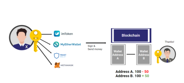 - Private Key ซึ่งเปรียบเสมือนรหัสผ่านและกุญแจในการโอนเงิน