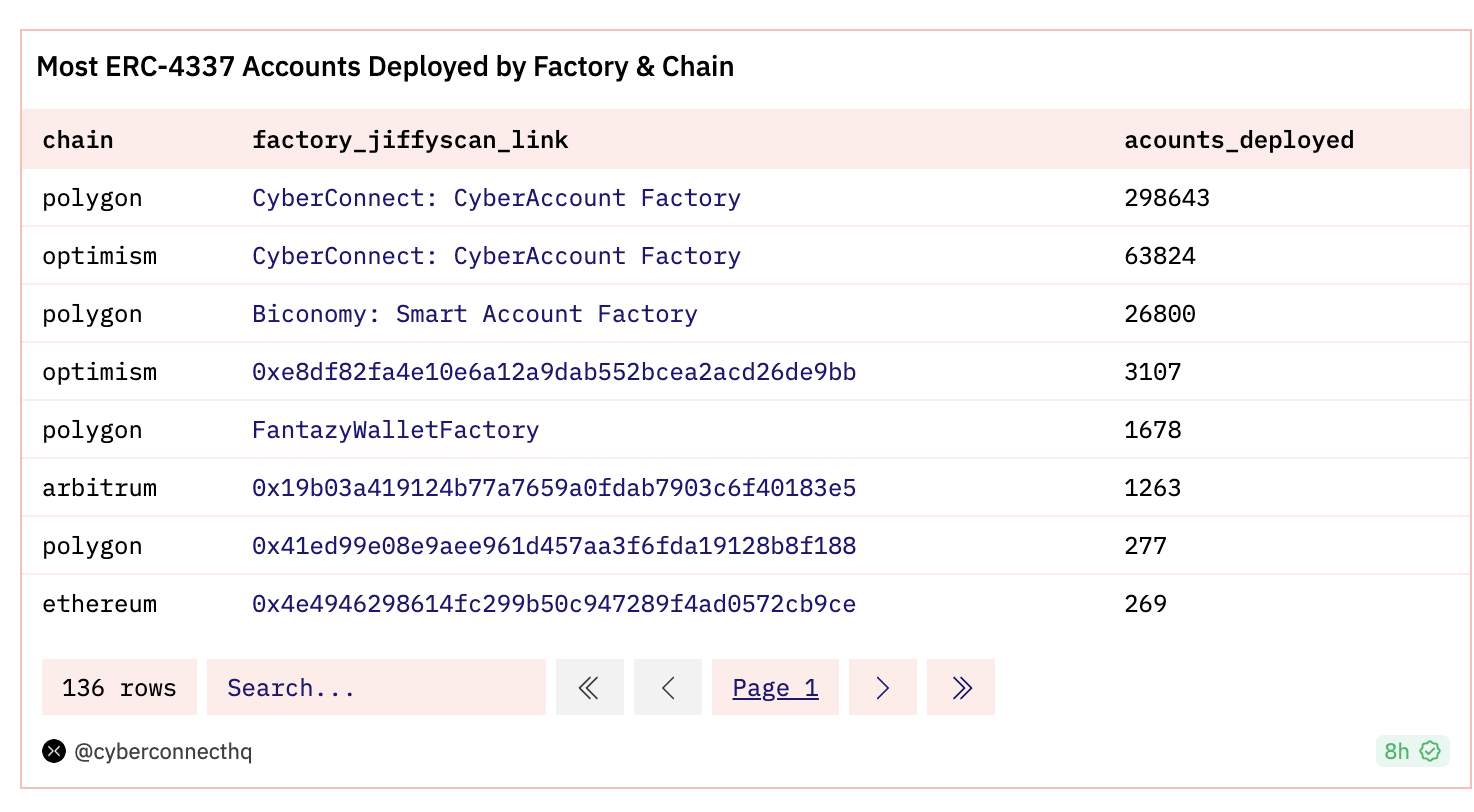 คุณยังสามารถเข้าชม dashboard ข้อมูลที่ถูกสร้างขึ้นโดยทีมงาน Sixdegree Labs (ได้รับทุนสนับสนุนจาก Ethereum Foundation เพื่อดำเนินงานวิจัยเกี่ยวกับ ERC-4337) ได้เช่นกัน: