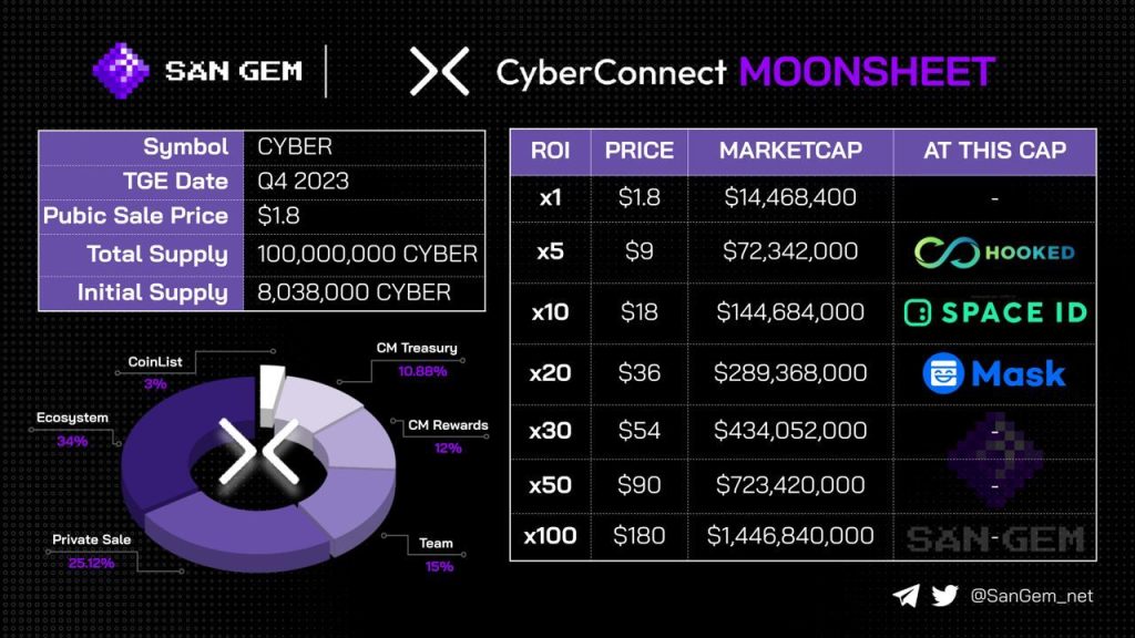 และคาดว่ามูลค่าตลาดของ CyberConnect ที่ TGE (การเปิดตัวเหรียญ) ตามคาดการณ์ของ community: $200,000,000 - $300,000,000
