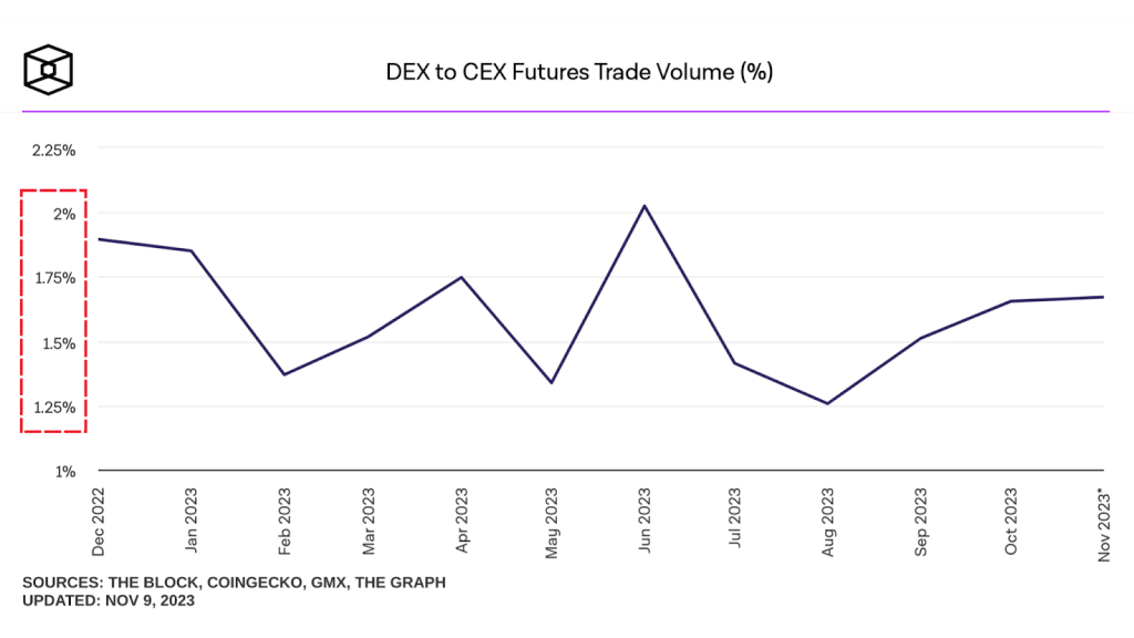ช่องว่างระหว่าง trading volume ของ DEX และ CEX นั้นยังห่างไกลกันมากโดยเฉพาะในส่วนของ Derivative Trading ที่ volume ของ DEX นั้นนับเป็น 1.5%-2% เท่านั้นเมื่อเทียบกับ CEX โดยสาเหตุสำคัญนั่นก็เพราะข้อจำกัดของ Perpetual DEX ที่ไม่สามารถสร้างประสบการณ์ในการใช้งานที่ดีรวมถึงความสะดวกสบายในการเทรด derivative ที่เหมือนกับ CEX ได้
