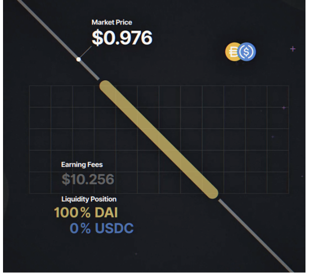 นับว่าเป็นข้อดีข้อเสียของการที่เราทำการสามารถกำหนดช่วงราคาของเราได้ ซึ่งข้อดีคือเมื่อสินทรัพย์นั้นราคาเหวี่ยงเกินจากจุดที่เราทำการตั้งราคาไว้ จากตัวอย่าง DAI/USDC V3 หากราคาของ DAI ตกลงไปถึง $0.976 ซึ่งหลุดช่วงราคาที่ Liquidity จะทำงาน การถอน LP ตอนนี้คุณจะได้เหรียญ DAI จำนวน 100% และ USDC 0% เพราะ USDC ถูกบังคับขาย จำนวนเหรียญ DAI ที่คุณจะได้ตอนถอนจะไม่ลดลงไปกว่านี้หากราคา DAI ลงต่ำไปอีก แต่ถ้าเทียบกับ V2 คุณจะขาดทุนและโดน Impermanent Loss ไปเรื่อยๆ ความเสียหายจะไม่หยุดจนกว่าคุณจะแตก LP ออกมา