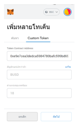 หากคุณใช้ Binance Smart Chain คุณจะไม่สามารถ search เหรียญแล้ว Add Token ได้ เพราะที่ไม่ขึ้นอาจเพราะเหรียญเหล่านั้นเป็นของฝั่ง Ethereum คุณจะต้องเข้าไป search ชื่อเหรียญใน bscscan แล้วไปหา Contract Address ของเหรียญนั้นมาใส่ใน Custom Token เท่านั้น