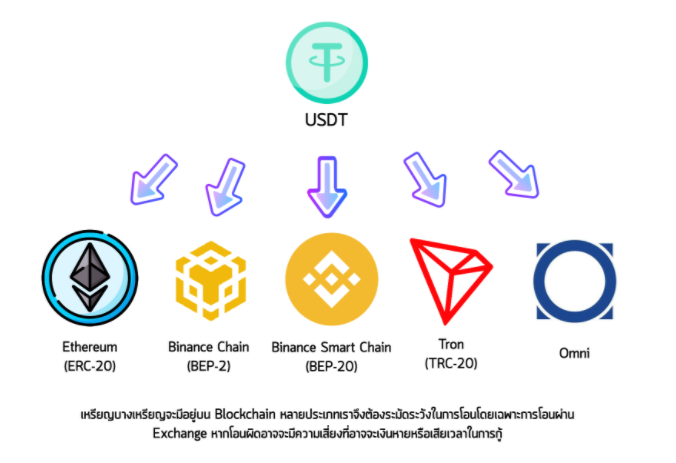 ทำความเข้าใจ chain ที่ support ทั้งต้นทางและปลายทางก่อนโอนเสมอ เช่น คุณไม่สามารถโอนเหรียญ USDT จากเว็บเทรดไทย ไปกระเป๋า Metamask ของคุณที่ chain ของ Binance Smart Chain ได้ เพราะเว็บเทรดไทยสามารถส่ง USDT ผ่าน chain ของ Ethereum และ Omni ได้เท่านั้น และถ้าคุณส่งเหรียญแบบ BEP-20 มาที่ Exchange ไทยคุณอาจจะต้องเสียค่าจัดการ (Bitkub คิดค่าธรรมเนียม 3000 บาท Zipmex ไม่คิดค่าธรรมเนียม แต่จะเสียเวลานานมาก)
