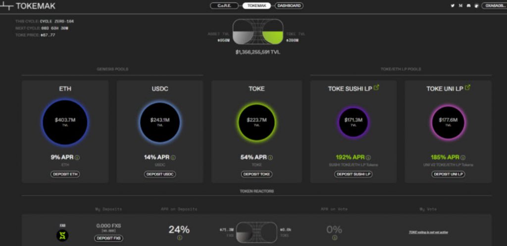 การคัดเลือกแพลตฟอร์มที่จะได้เข้าร่วมเรียกว่า Collateralization of Reactors Event (C.o.R.E.) โดย 1 TOKE = 1 VOTE สิทธิ์ที่จะได้เข้า Reactor จะมีทั้งหมด 5 สิทธิ์ เมื่อคัดได้แล้วก็จะให้สภาพคล่องแก่แพลตฟอร์มที่ได้รับเลือกในระยะเวลาหนึ่ง ปัจจุบันเปิดเป็น C.o.R.E.2. แล้ว ผู้ชนะคือ Shapeshift, Visor, Synthetix, Illuvium และ APWine