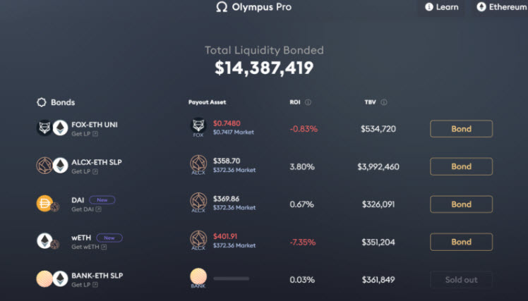 เมื่อเห็นว่าวิธีการนี้ค่อนข้างได้รับผลตอบรับดีจึงเปิดแพลตฟอร์มใหม่ชื่อ Olympus Pro ในการสร้างตลาดให้แพลตฟอร์มอื่นๆนำ Governance Token ของตนเองมาขายในราคาส่วนลด เพื่อแลกกับ LP token ที่เป็น Liquidity Pool ให้กับแพลตฟอร์ม