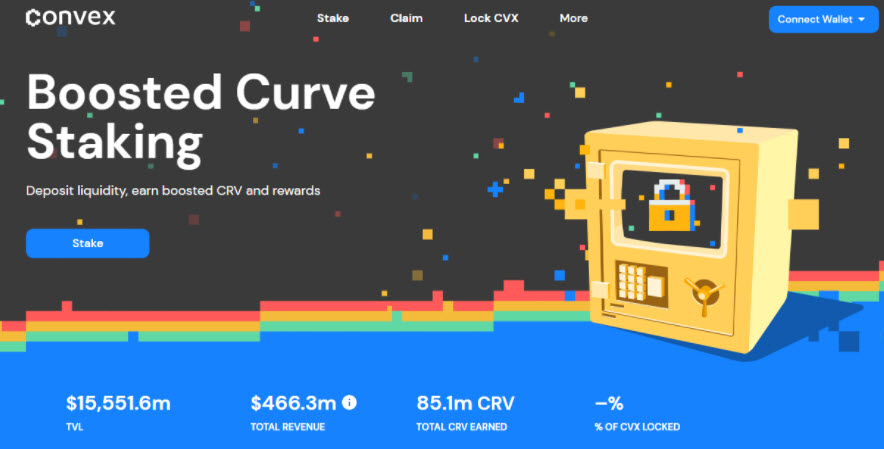 Convex นั้นเป็นแพลตฟอร์มที่ต่อยอดจาก Curve โดยมีทีมพัฒนาจาก Curve มาช่วยครับ Covex ได้รับความนิยมอย่างมากระดับ TVL 15,000 ล้านดอลลาร์ เป็นอัดับ 3 ของทั้งหมด โดยปกติแล้วการ Lock CRV (Gov Token ของ Curve) ไว้ใน Curve จะได้รับ veCRV เยอะนัอยตามจำนวนปีที่ลอค มีระหว่าง 1–4 ปี ค่า Fee บนแพลตฟอร์มจะมาสะสมให้คนที่ถือ veCRV และสิ่งนี้ใช้เป็นสิทธิ์ในการโหวตเพื่อ Boost Pool ได้อีกด้วย