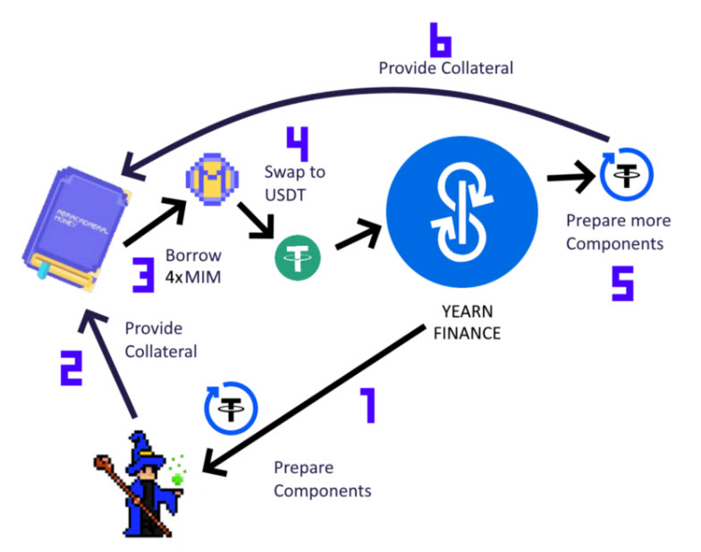 อยากบอกว่าวิธีการนี้ไม่ใช่เป็นท่าพิสดารเลย เพราะจริงๆแล้ว Abracadabra มีปุ่มที่กดทีเดียวทำให้เลยด้วยซ้ำครับ นอกจากนี้ยังเลือกได้ว่าจะทำวนซ้ำกี่รอบ โดยเลือกได้สูงสุดที่ 10 รอบเลยทีเดียว แพลตฟอร์มประมาณการณ์ว่าถ้ากู้ 90% ของมูบค่าเงินค้ำและวน 10 รอบ จะได้ผลตอบแทนมากกว่าเดิม 6.51 เท่า (แต่โอกาสโดน Liquidate ก็มากขึ้นเช่นกัน)
