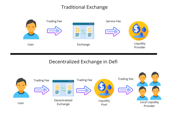 สิ่งที่น่าสนใจคือ DeFi เป็นการพัฒนาแนวคิดทางการเงินที่เดิมที่แล้วเราจะฝากเงินเข้าไปที่ตัวกลางอย่าง ธนาคาร ซักแห่งเพื่อให้เขาเป็นคนบริหารจัดการเงินของเราตามเงื่อนไขที่เราตกลงกับธนาคาร ซึ่งเราเชื่อในธนาคารให้ดูแลเงินของเรา