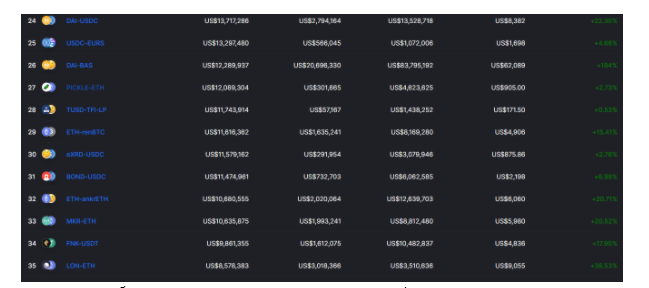 โดยคุณสามารถเช็คได้ว่าคู่เหรียญไหนมีผลตอบแทนเท่าไหร่จากเว็บ Uniswap.info (หรือหน้า Stat ของแพลทฟอร์มตัวนั้น) แต่โดยทั่วไปแล้วคู่ของ Stablecoin ในขั้นตอนการ Farm ด้วย Stablecoin ใน Uniswap