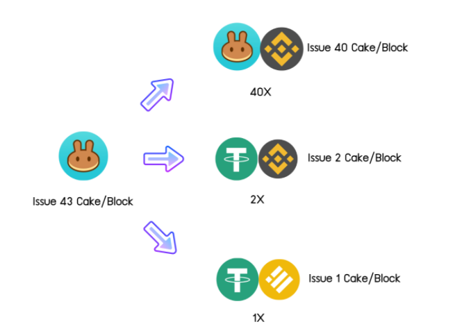 ถ้าคุณได้ลองเข้าไปดูแพลตฟอร์ม DeFi อย่าง PancakeSwap และเข้าไปดูคู่ของ BNB-Cake คุณจะเห็นตัวเลข 40X ซึ่งมันหมายความว่าในคู่ BNB-Cake นี้แจกเหรียญ Cake เมื่อเทียบกับคู่เหรียญอื่นๆถึง 40 เท่าและจุดนี้เองเป็นส่วนสำคัญที่ทำให้แพลทฟอร์ม DeFi หลายๆแห่งสามารถทำผลตอบแทน APY ได้ถึง 100-1000% ต่อปี