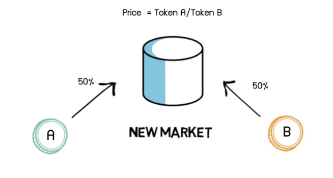 เพราะฉะนั้นมันแตกต่างจากกระดานเทรดทั่วไปที่เป็นแบบ Order Book ที่ราคาจะถูกกำหนดจากราคาที่ซื้อขายล่าสุด แต่เป็นอัตราส่วนของเหรียญไม่ว่าเหรียญนั้นจะมีจำนวนเท่าใด ยกตัวอย่างเช่นถ้าใน Pool หนึ่งมีเหรียญ X:USDT ในจำนวน 100 X:100 USDT นั่นแปลว่า X จะมีราคา 1 USDT ซึ่งก็ไม่ได้แตกต่างอะไรกับหากมี X:USDT ในจำนวน 10000 X:10000 USDT เหรียญ X ก็จะยังมีราคา 1 USDT คงเดิม