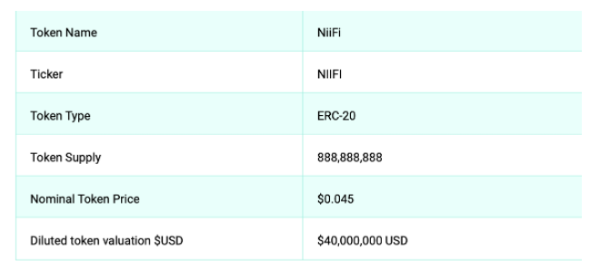 โดยตัว NIFII token มีกำหนดการ IDO (Initial Dex Offering) บน Polkastarter วันที่ 20 พ.ค. ที่ราคา $0.045 เป็นจำนวนทั้งหมด 4,444,445 $NIIFI