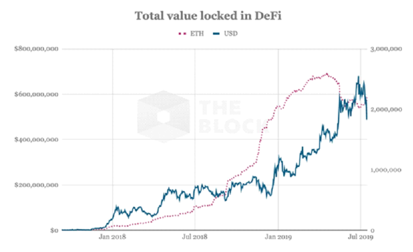 จากกราฟด้านล่างจะแสดงให้เห็นว่า มีเงินกว่า 2.5 ล้าน USD ในระบบ DeFi ในปัจจุบัน