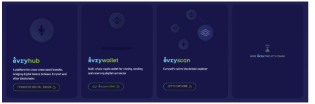 Evry Hub - เป็นแพลตฟอร์มสำหรับการโอนสินทรัพย์แบบ cross-chain ทำหน้าที่เชื่อมโทเคนดิจิทัลระหว่าง แพลตฟอร์ม Evrynet เข้ากับบล็อคเชนอื่นๆ