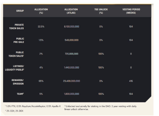 ส่วน Atlas จะเป็น In-Game Token ที่ใช้ในการทำกิจกรรมต่างๆในเกมซึ่งจะมีระบบ Mint และ Burn ทิ้งเช่นถ้าเราไปสำรวจดาวเรามีโอกาสจะได้รับ Atlas ซึ่งเป็นการ Mint ขึ้นมาและเราต้องเอา Atlas นี้ไปทำการ Craft ของต่างๆซึ่งจะถูก Burn ทิ้งไปซึ่ง Dao สามารถกำหนดสัดส่วนในจุดนี้ได้