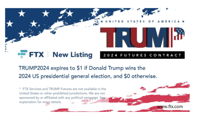 เป็นการทำนายว่า DONALD TRUMP จะชนะการเลือกตั้งของสหรัฐในปี 2024 ได้หรือไม่ โดยถ้า TRUMP ชนะการเลือกตั้งสัญญาก็จะเป็น $1 แต่ถ้าไม่ก็จะเป็น $0 โดยปัจจุบันราคา TRUMP2024 อยู่ที่ $0.094 เท่ากับว่าถ้า TRUMP สามารถชนะการเลือกตั้ง 2024 ได้ คนที่ซื้อ TRUMP2024 ในตอนนี้จะมีกำไรสูงกว่า 1000% เลยทีเดียว