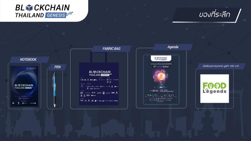 สำหรับผู้ที่มาร่วมงาน Blockchain Thailand Genesis 2019 ทุกท่าน จะได้รับของที่ระลึกดังนี้