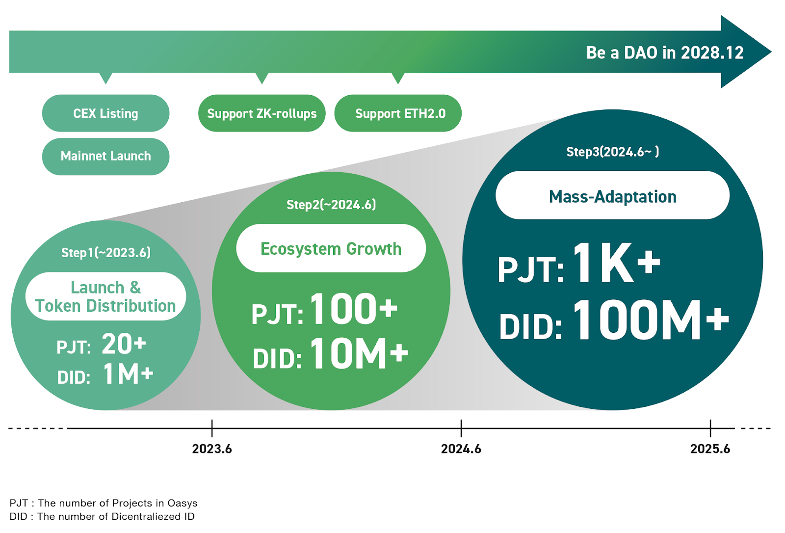 โดยหนึ่งใน Roadmap สำคัญในอนาคตของ Oasys คือการพัฒนาระบบ Governance ให้เป็น Decentralized Autonomous Organization (DAO) แบบสมบูรณ์ภายในเวลา 6 ปี โดยให้ Community ได้เข้ามามีส่วนร่วมในการตัดสินใจทิศทางการพัฒนาของโปรเจกต์ นอกจากนี้ทาง Oasys ยังมีแผนที่จะขยายความร่วมมือกับนักพัฒนาเกมและกระดานเทรดต่างๆเพิ่มเติมเพื่อทำให้ Ecosystem เติบโตต่อไปได้อย่างแข็งแกร่ง