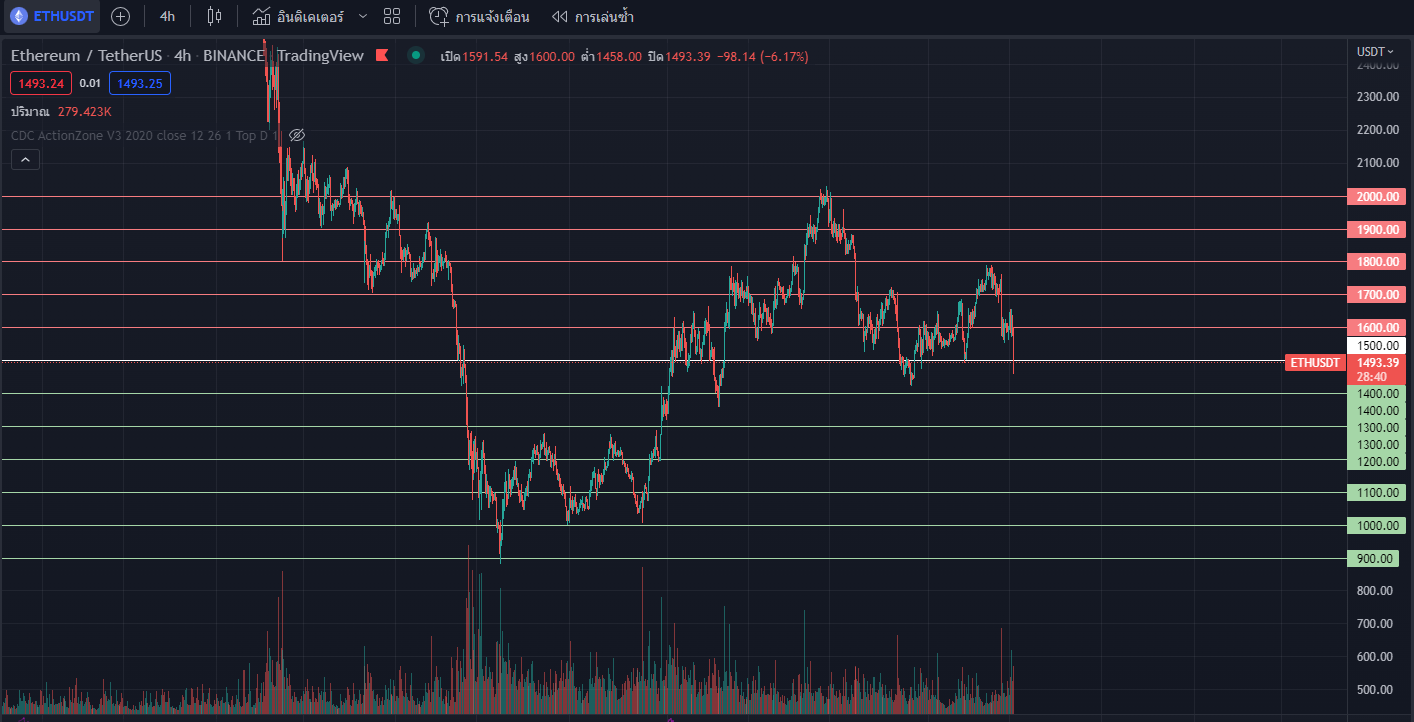 ตัวอย่างเช่น หากเราจากอะไรหลาย ๆ อย่างแล้วคิดว่าราคาของ ETH วิ่ง Sideway อยู่ในกรอบกว้าง ๆ ระหว่าง $900- $2000 ไปอีกพักใหญ่ก็สามารถลองกำหนดกรอบราคาที่จะทำ Grid Trading ของ ETH ตามรูปด้านบนโดยให้