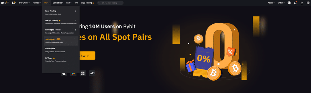 ขั้นที่ 1: คลิกที่ Trade (เทรด) แล้วไปที่ Trading Bot (บอทซื้อขาย)