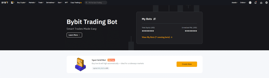 ซึ่ง Exchange อย่าง ByBit ก็ได้เห็น Pain Point นี้และสร้าง Grid Bot ขึ้นมา ซึ่งสามารถใช้ได้โดยตรงภายใน Exchange เลยและไม่เสียค่าธรรมเนียมการใช้งาน Bot ด้วย มากไปกว่านั้นในช่วงขณะที่เขียนนี้ทาง Bybit ไม่เก็บ Trading Fee สำหรับ Spot Trading ด้วย ทำให้ Grid Bot ของ Bybit ที่เป็นแบบ Spot นั่นได้ผลประโยชน์ไปเต็ม ๆ แต่หากภายหลัง Bybit ยกเลิก 0% Fee Spot Trading ไปแล้วก็จะต้องเสียที่ Order ละ 0.1%