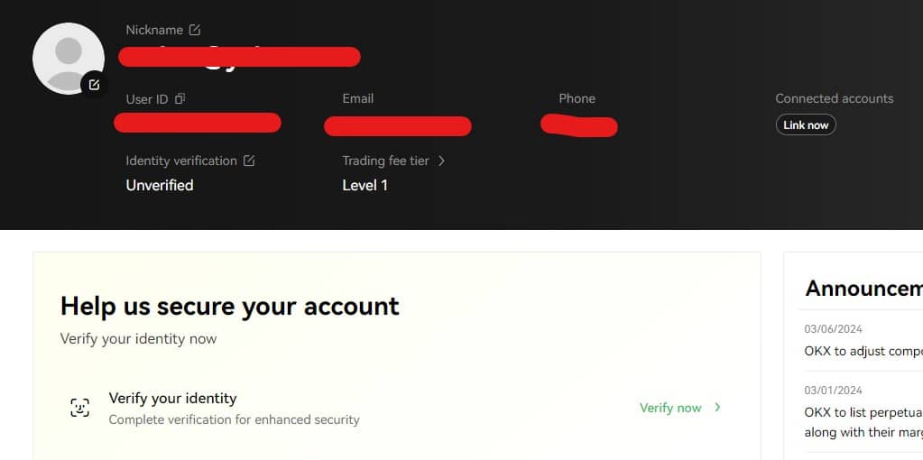 ต่อมา เพื่อให้สามารถใช้บัญชีได้โดยไม่มีปัญหายุ่งยากใดๆ ให้เราดำเนินการตามกระบวนการ KYC ที่ OKX ให้เสร็จสิ้นโดยกดที่ Verify now