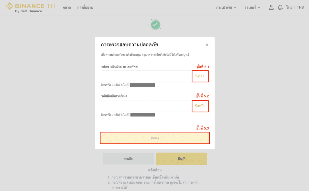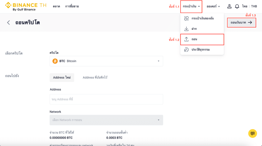 หมายเหตุ: หากคุณเปิดใช้งาน 2FA ระบบจะขอให้คุณป้อนรหัสผ่าน 2FA ทุกครั้งที่ทำรายการถอนเงิน