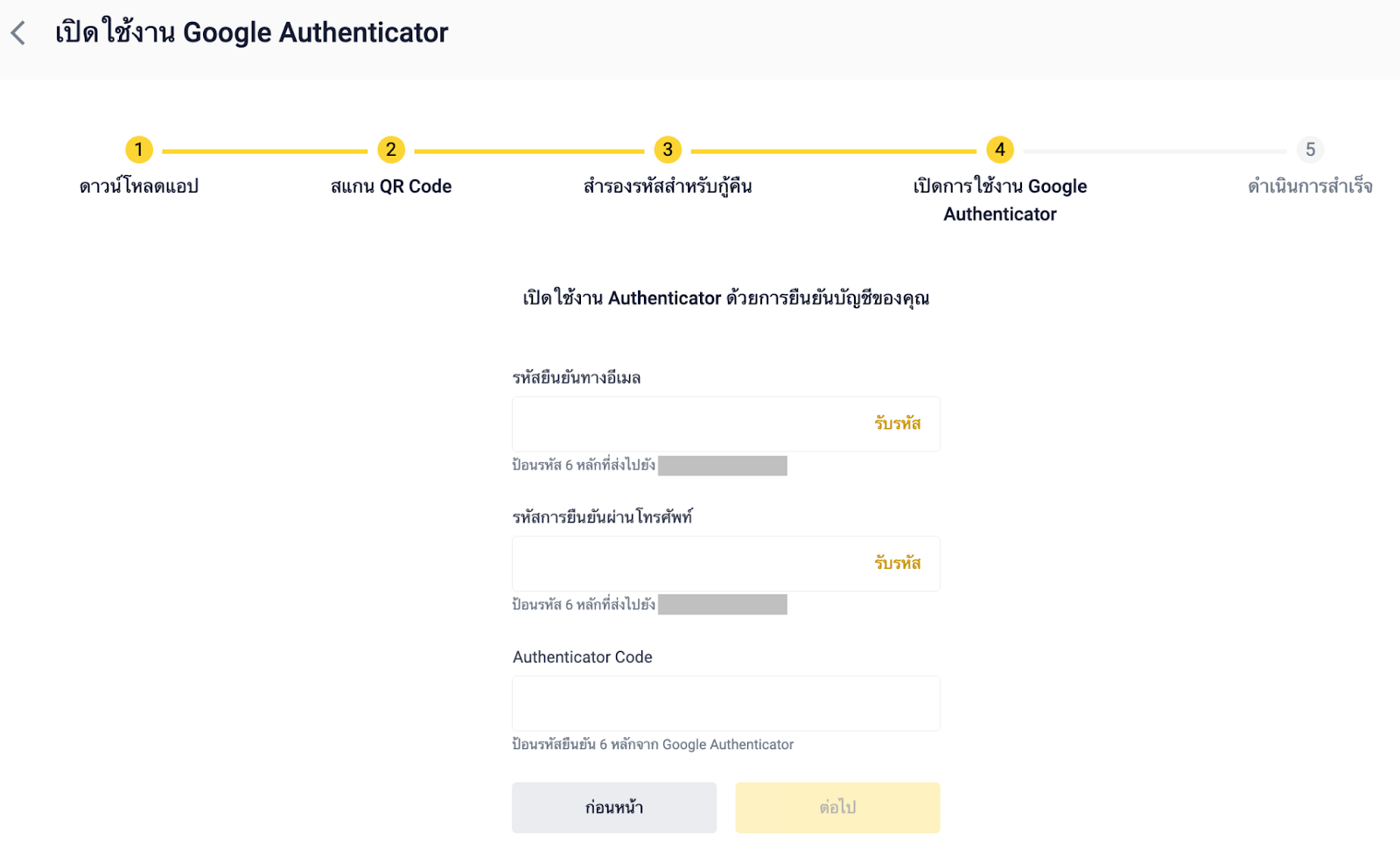 6.1 ป้อนรหัส 6 หลักที่ได้รับและคลิก [ต่อไป]