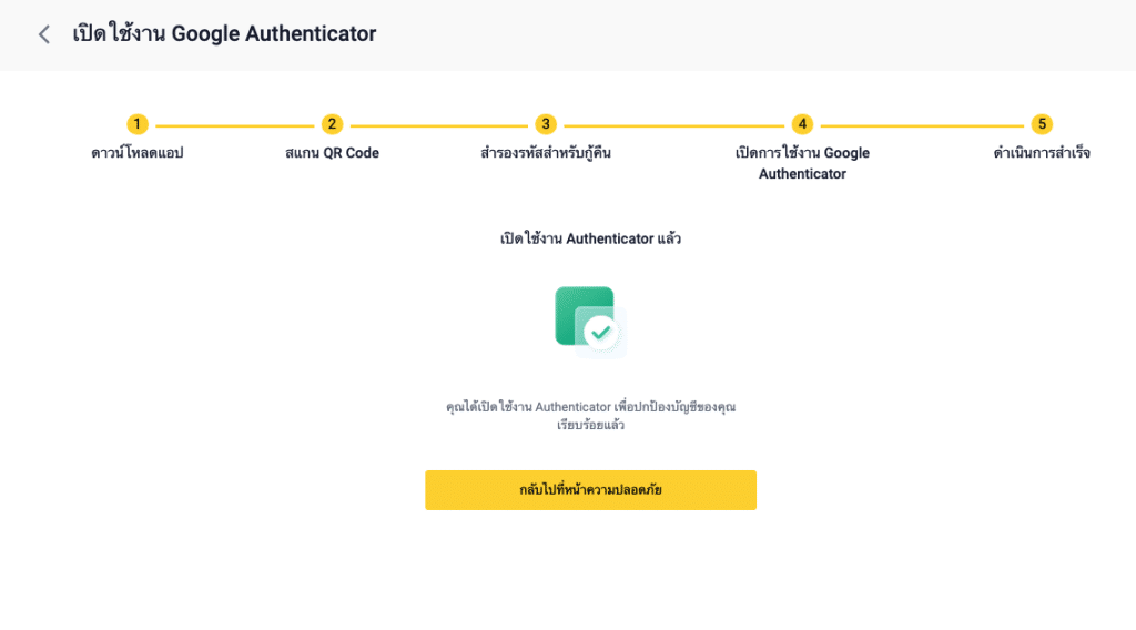 7. คุณเปิดใช้งาน Google Authenticator เพื่อปกป้องบัญชีของคุณสำเร็จแล้ว