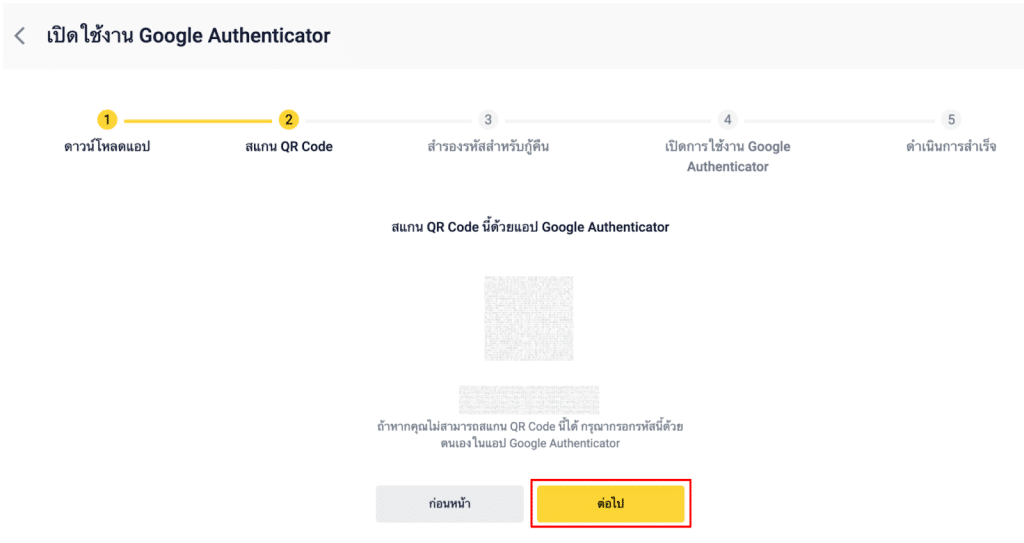 3. คุณจะเข้าสู่ขั้นตอนถัดไป สำหรับผู้ใช้ที่ยังไม่ได้ดาวน์โหลด Google Authenticator คุณสามารถดาวน์โหลดแอปบนอุปกรณ์มือถือของคุณได้ เมื่อดาวน์โหลดแล้ว คลิก [ต่อไป] เพื่อเริ่มต้น
