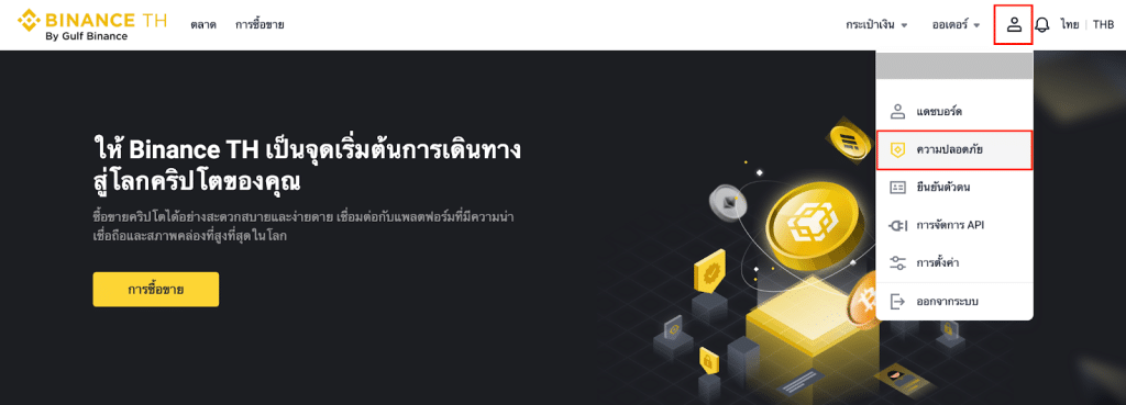 1. เข้าสู่บัญชี Binance th ของคุณแล้วคลิก [โปรไฟล์] - [ความปลอดภัย]