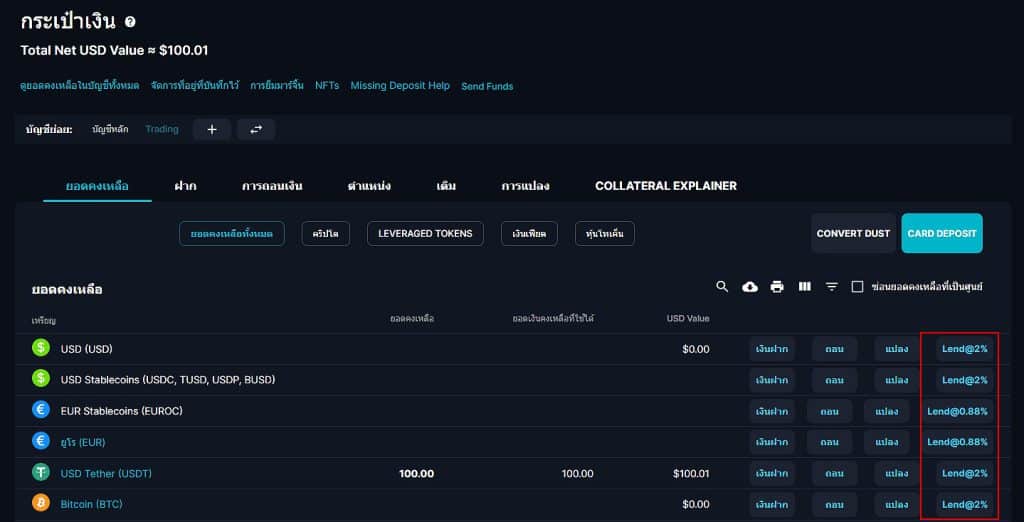 วิธีการฝากเงิน (Lending) เพื่อรับดอกเบี้ยใน FTX