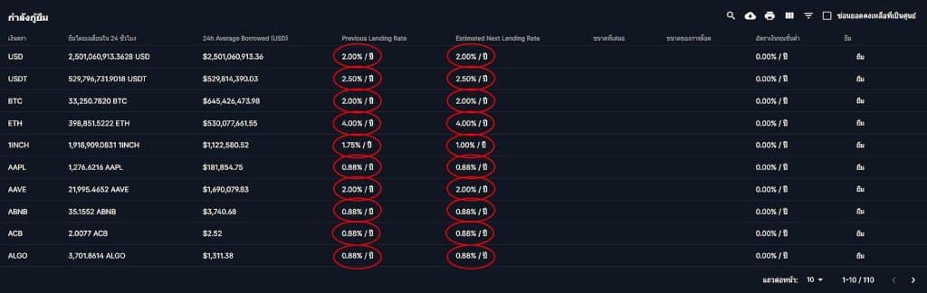 อย่างที่บอกว่า อัตราดอกเบี้ยจะเป็นไปตามกลไกตลาด หากในตอนนั้นเหรียญๆนึงมีสภาพคล่องเหลือน้อย ดอกเบี้ยเงินกู้ก็จะสูงขึ้นเพื่อหลีกเลี่ยงไม่ให้ Margin Trader เข้ามากู้เพิ่ม รวมไปถึงดอกเบี้ยเงินฝากก็จะสูงขึ้น เพื่อจูงใจให้คนเข้ามาฝากเงินอีกด้วย