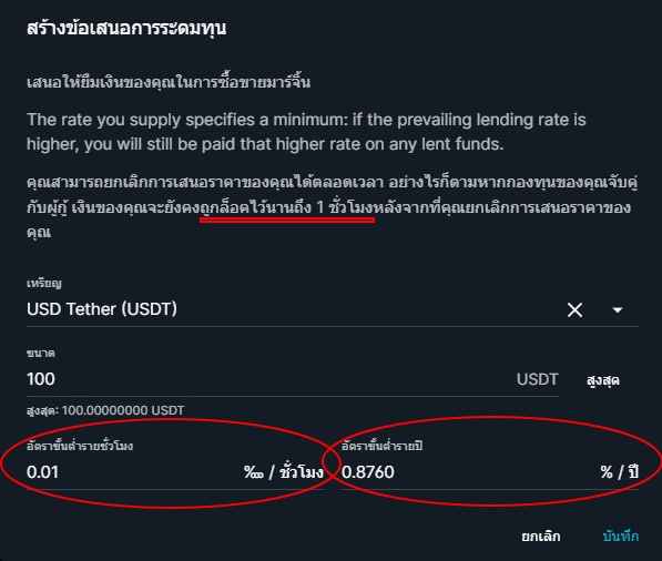 หลังจากเลือกค่าต่างๆเสร็จ ก็กดบันทึกได้เลย เป็นอันเสร็จสิ้นการฝากเงิน/ปล่อยกู้ใน FTX นั่นเองครับ