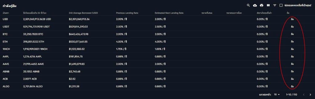 ผู้ใช้งานสามารถกดที่คำว่า Lend ตามรูปด้านบน หรือกดคำว่า ยืม (Lend) ตามรูปด้านล่างได้เลย ซึ่งพอเป็นเวอร์ชั่นภาษาไทยอาจจะมีบัคเล็กน้อย แต่หากใช้เป็นภาษาอังกฤษ รูปด้านล่างจะขึ้นคำว่า Lend เช่นเดียวกันครับ