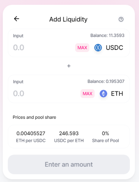 โดยการปล่อยกู้นั้นเราต้องปล่อยกู้เป็นคู่ Pair เช่นในตัวอย่างคือ ETH-USDC เราต้องนำทั้งสองเหรียญนี้ที่มีมูลค่าเท่ากันในอัตรา 50:50 ไปปล่อยกู้ถึงจะมีประสิทธิภาพที่สุด ซึ่งถ้าราคาของ Ethereum ผันผวนอัตราส่วนของการปล่อยกู้จะไม่ได้ประสิทธิภาพเต็มที่ เราจึงควรรักษาระดับไว้ (จริงๆไม่ต้องกังวลมากก็ได้) โดยสิ่งที่ต้องระวังอีกอย่างคือค่าธรรมเนียมของ Smart Contract ซึ่งการใส่ Cryptocurrency ครั้งแรกจะมีค่าธรรมเนียมประมาณ 10-15 บาท แต่ค่าธรรมเนียมในการปล่อยกู้นั้นจะอยู่ที่ 200-300 บาทเลยทีเดียว