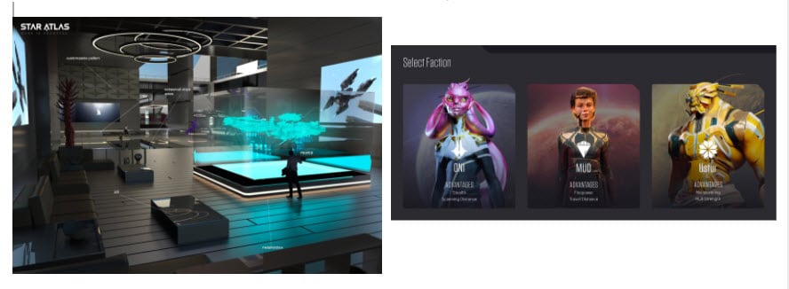 Star Atlas เป็นเกมที่อยู่บนบล็อกเชน Solana เป็นเกมแนว Metaverse แบบอวกาศ โดยเกมจะเล่าถึงในปี 2620 โดยแบ่งเป็น 3 เผ่า Mud, Oni, Ustur ให้ต่อสู้กันเพื่อแย่งทรัพยากร
