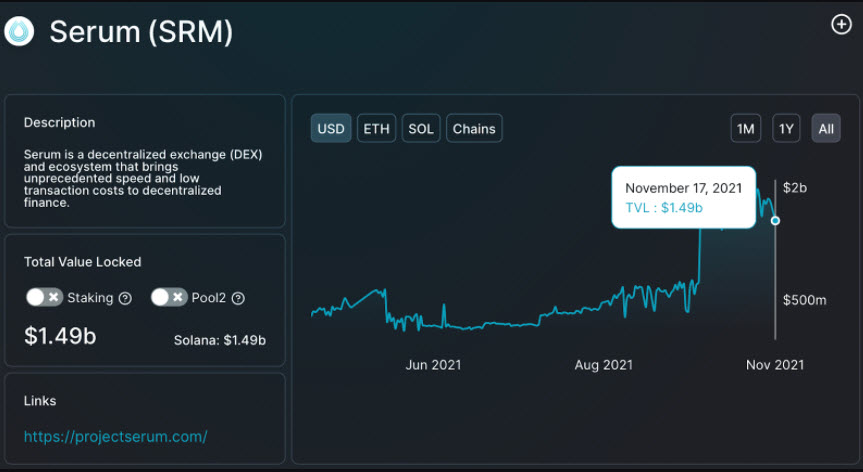 ปัจจุบัน Total Value Locked หรือเงินที่ล็อคอยู่ใน Project ของ Serum อยู่ที่ $1.49billions เลยทีเดียว