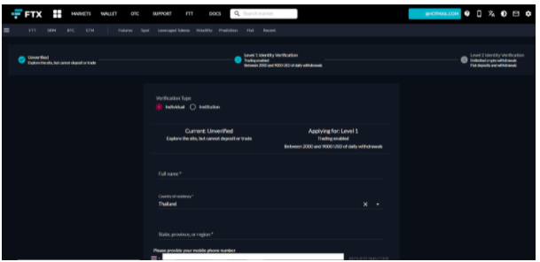 กรอกข้อมูลตามที่แพลตฟอร์มสอบถามโดยเลือกตอบตามความจริง เมื่อกรอกข้อมูลครบถ้วนก็รอระบบทำการตรวจสอบและอนุมัติเพียงเท่านี้เราก็จะสามารถเริ่มเทรดบน FTX ได้อย่างง่ายดาย
