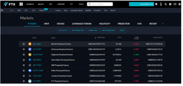 ผลิตภัณฑ์ฟิวเจอร์ของ FTX นั้นมีหลากหลายคู่สัญญาให้ผู้เทรดได้เลือกเทรด เช่น BTC ETH BNB DOGE SOL และอื่นๆอีกมากมาย โดยคู่สัญญาฟิวเจอร์ของ FTX นั้นจะมีแบบ Perpetual (PERP) ซึ่งจะเป็นสัญญาซื้อขายที่ไม่มีวันหมดอายุ และทาง FTX ก็ได้มีคู่สัญญาที่มีวันหมดอายุ เช่น ETH-0924 หมายถึงสัญญานี้จะหมดอายุในวันที่ 24 เดือนกันยายนและในส่วนของ ETH-1231 หมายถึงสัญญานี้จะหมดอายุในวันที่ 31 เดือนธันวาคม อีกทั้งยังมีคู่สัญญา Index เช่น Altcoin Index,Defi Index สำหรับคนที่ถนัดเทรดในภาพรวมอีกด้วย โดยมีระดับ leverage ให้เลือกที่ 5 ระดับได้แก่ 1x, 3x, 5x, 10x, 20x