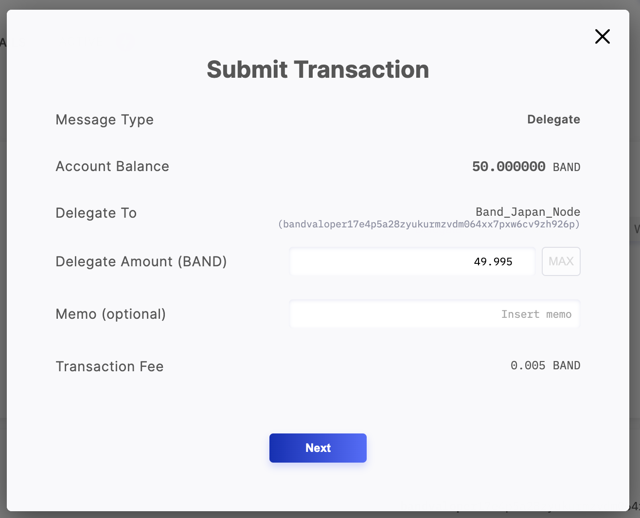 ขั้นตอนที่ 4 - Delegate (Stake) BAND ของคุณ