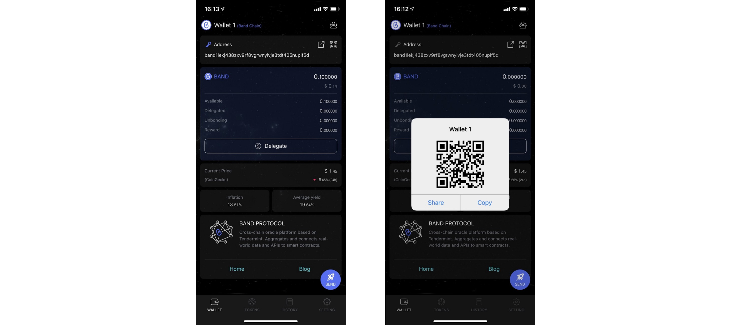 ***Cosmostation Wallet รองรับเฉพาะโทเค็น mainnet BAND และไม่รองรับโทเค็น BAND ERC20 ดังนั้นตรวจสอบให้แน่ใจว่ากระเป๋าเงินที่คุณส่ง BAND ของคุณมานั้น เป็นที่อยู่หลักของ BAND หรือไม่****