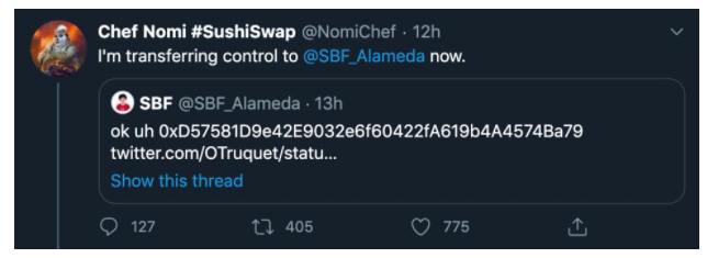 * Sushiswap เรียกทีมผู้บริหารว่า “เชฟ”