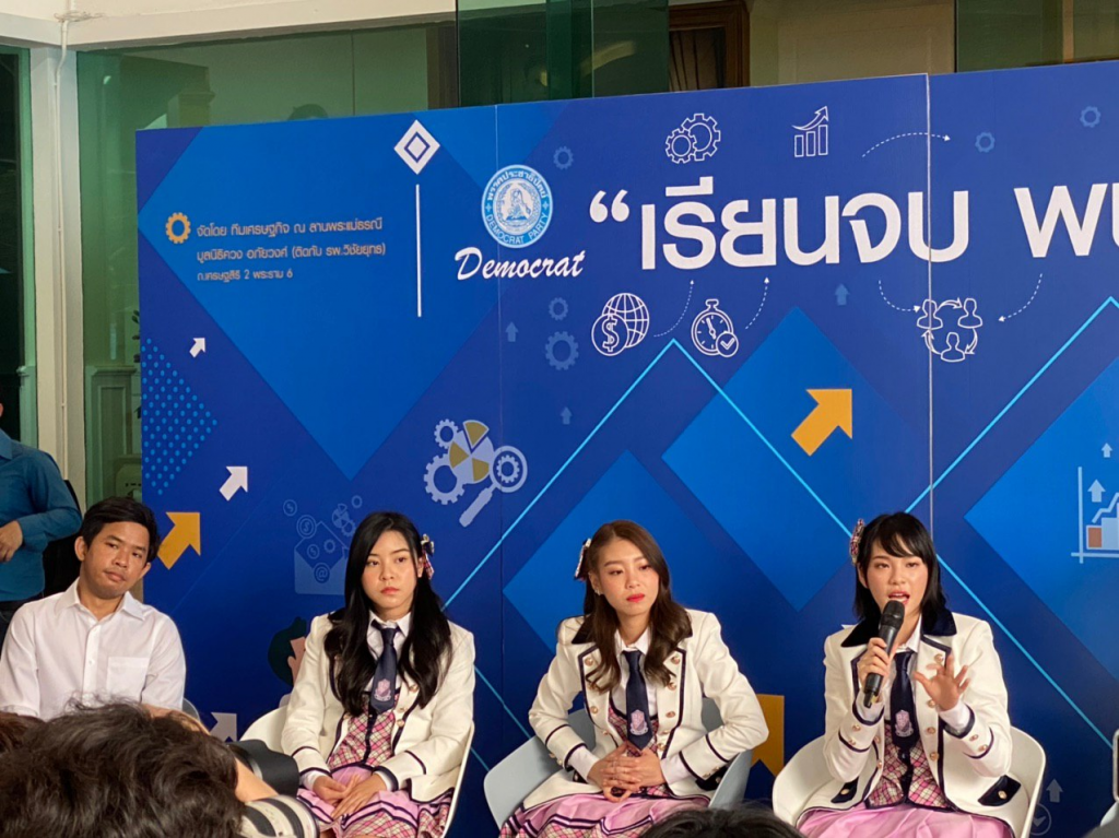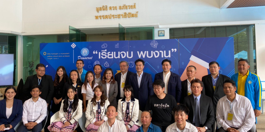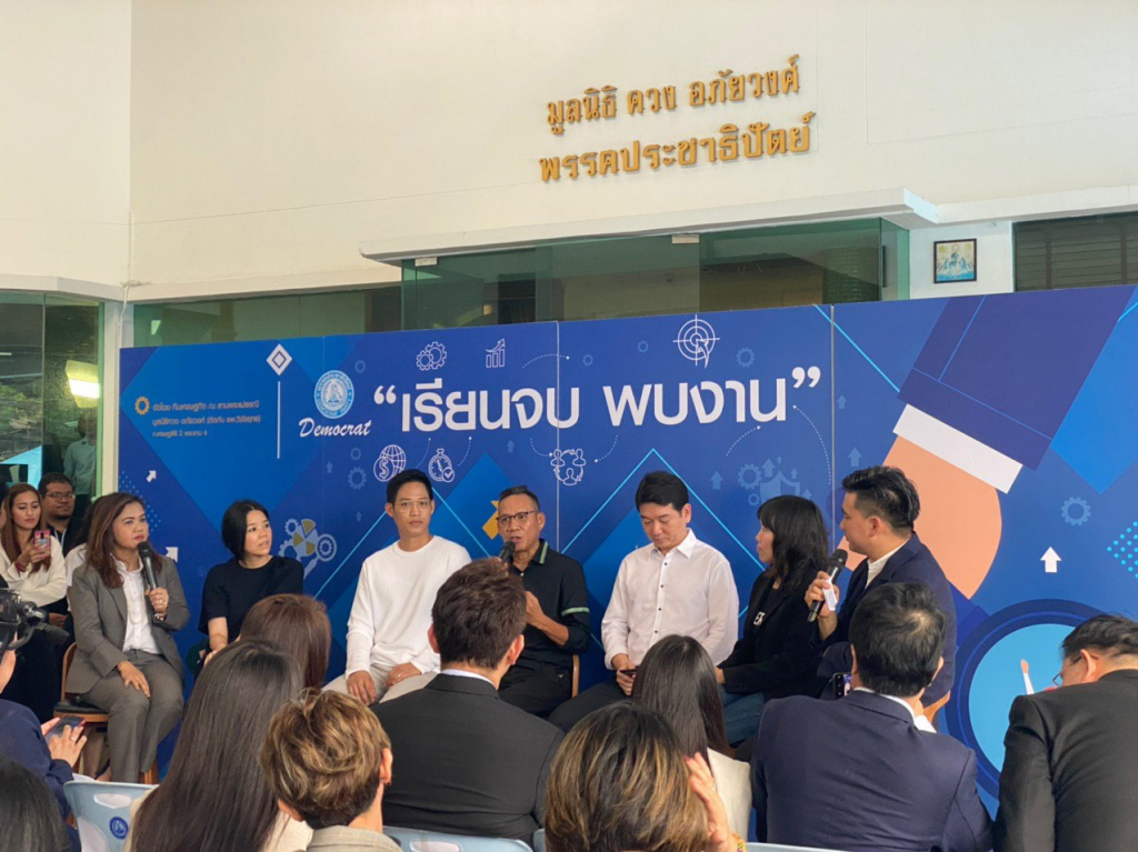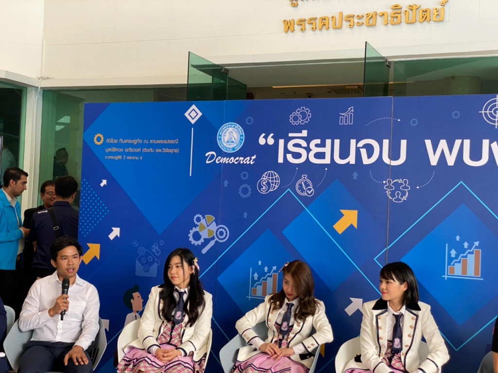 พรรคประชาธิปัตย์ (15 มกราคม 2562) มีรายงานว่าวันนี้ ทีมเศรษฐกิจทันสมัย พรรคประชาธิปัตย์ ได้มีการจัดงานใหญ่เพื่อเปิดตัวโครงการ “เรียนจบ พบงาน” โดยมีแอพพลิเคชั่นเชื่อมโยงงาน ที่ฝึกงานและการยกระดับทักษะอาชีพให้สอดคล้องกับยุค Digital Transformation ได้ง่าย ๆ ผ่าน Line ‘@DemTum’ ขึ้นมาให้กับคนไทยทุกคน เพราะตระหนักถึงปัญหาในการขาดแรงงานฝีมือในเมืองไทย ซึ่งจะเป็นปัญหาใหญ่ต่อระบบเศรษฐกิจไทยในอนาคต