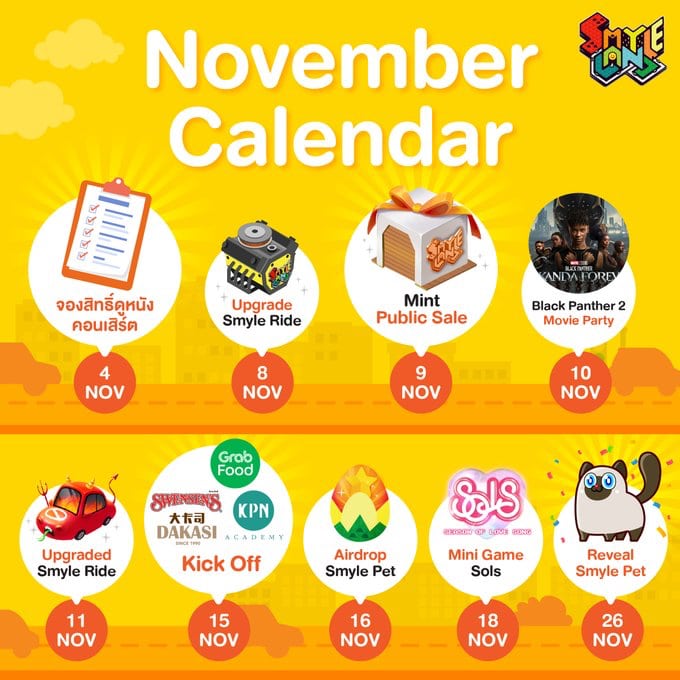- รับ NFT Smyle Pet ฟรี เมื่อ Mint กล่องสุ่ม Smyle Ride 3 กล่อง